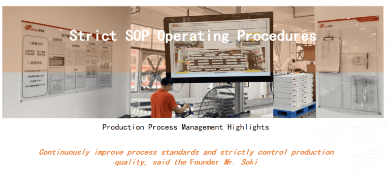 We understand that a robust production process is essential for delivering reliable and consistent products. We have implemented stringent quality control measures at every stage of manufacturing, ensuring all Felicity ESS batteries meet the highest international standards. This dedication to quality, combined with a state-of-the-art production facility, allows us to deliver efficient, scalable production, ultimately benefiting our customers.